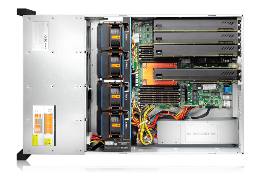 采用1+1冗余电源,支持热插拔更换,保证系统的稳定性;采用智能温控风扇模组,支持热插拔更换,具有优良的抗震设计。