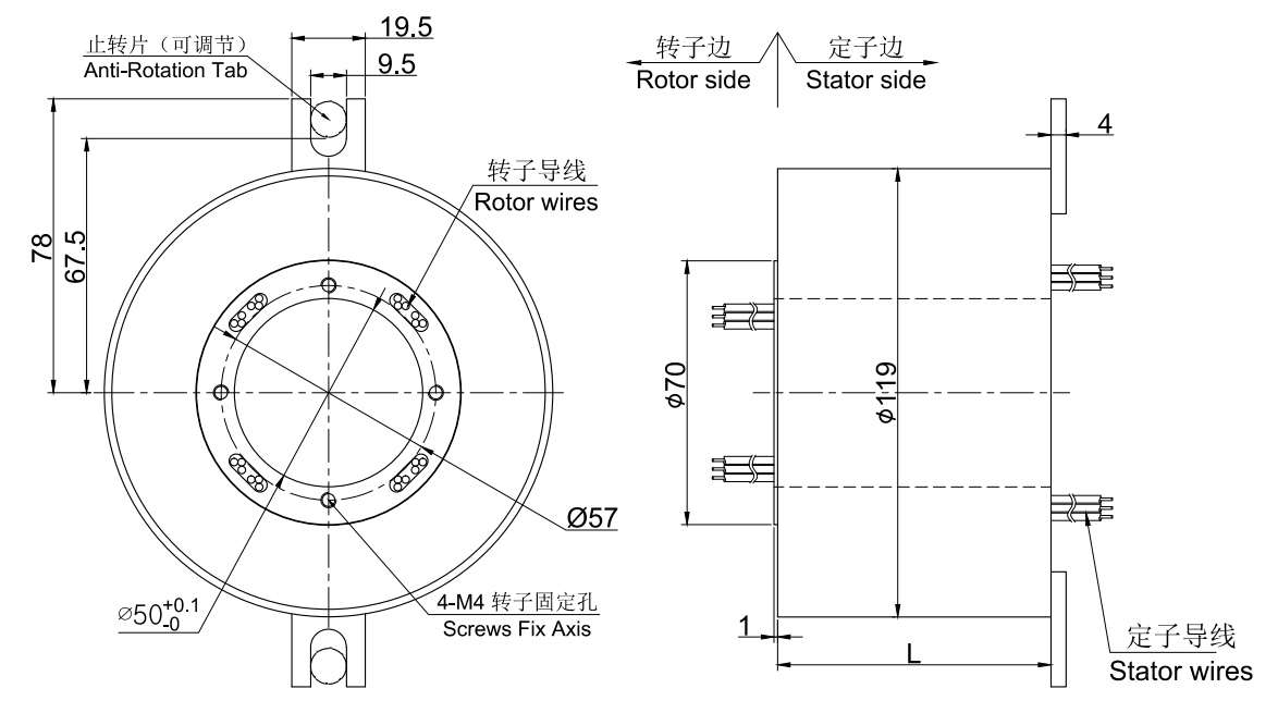 扁平盘式滑环,主要应用对安装高度有严格限制的场合,要求360度陆续在旋转且需要保证电源,数字信号,模拟信号不能中断:如旋转门,医用CT,安检设备,以及其他工业自动化设备,智能制造设备, 焊接机器人等;