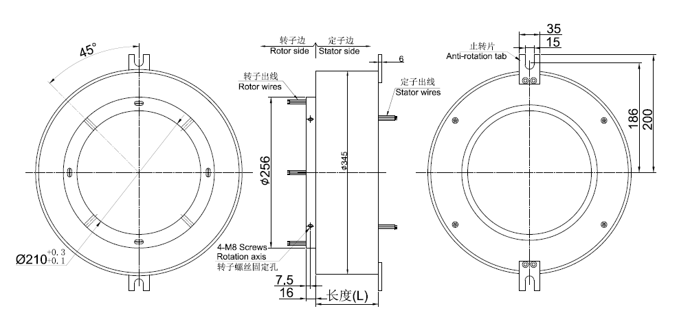 过孔式导电滑环是现在工业滑环里面性价比最高,最畅销的一个系列产品,主要应用于360度陆续在旋转且需要保证电源,信号不能中断的场合:如各种雷达,安防设备,娱乐设备,各种机器人、机械手,各种浮空器,各种风力发电设备吹瓶机,灯检机,各种转台,游乐游艺设备,虚拟3D,VR设备, 车载卫星天线,船载卫星电线,电缆卷筒,擦窗机设备,旋转餐桌,旋转舞台,旋转屏幕,旋转餐厅,电动工程机械,最新的VR模拟仿真设备等。;